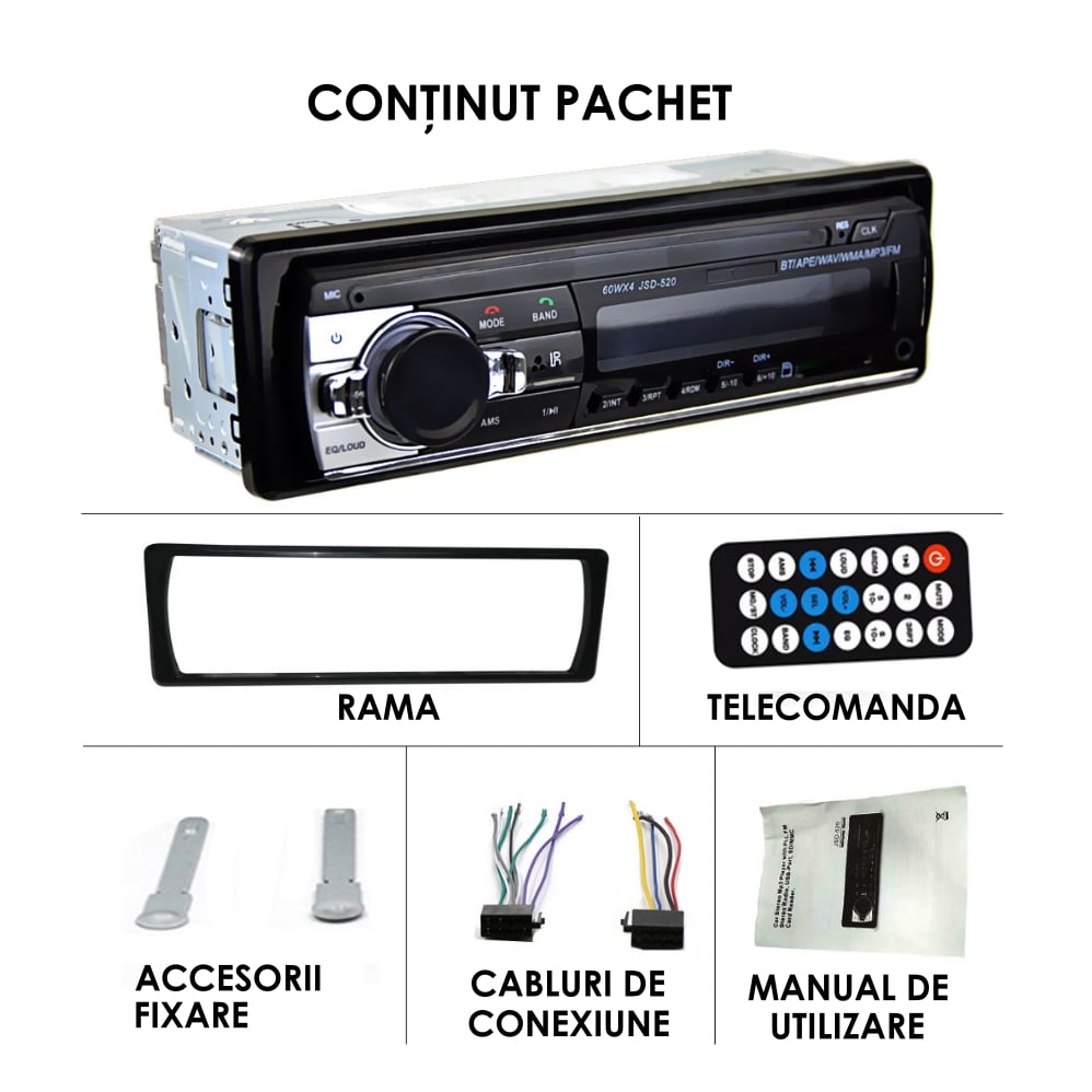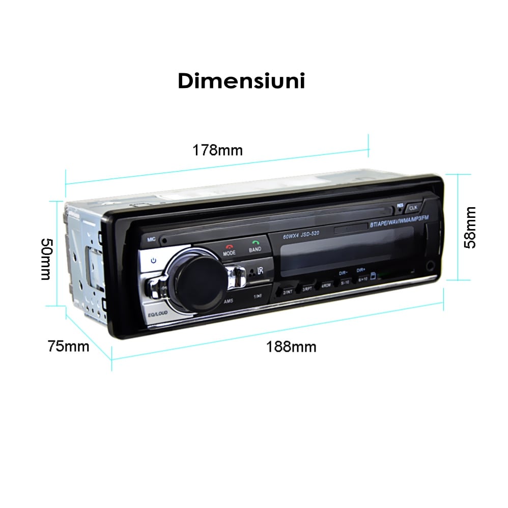 Radio MP3 Player auto INOVA® 1DIN, USB, Bluetooth, SD, Hands-free, AUX, Radio FM Stereo, 4x60W, 12V, Telecomanda