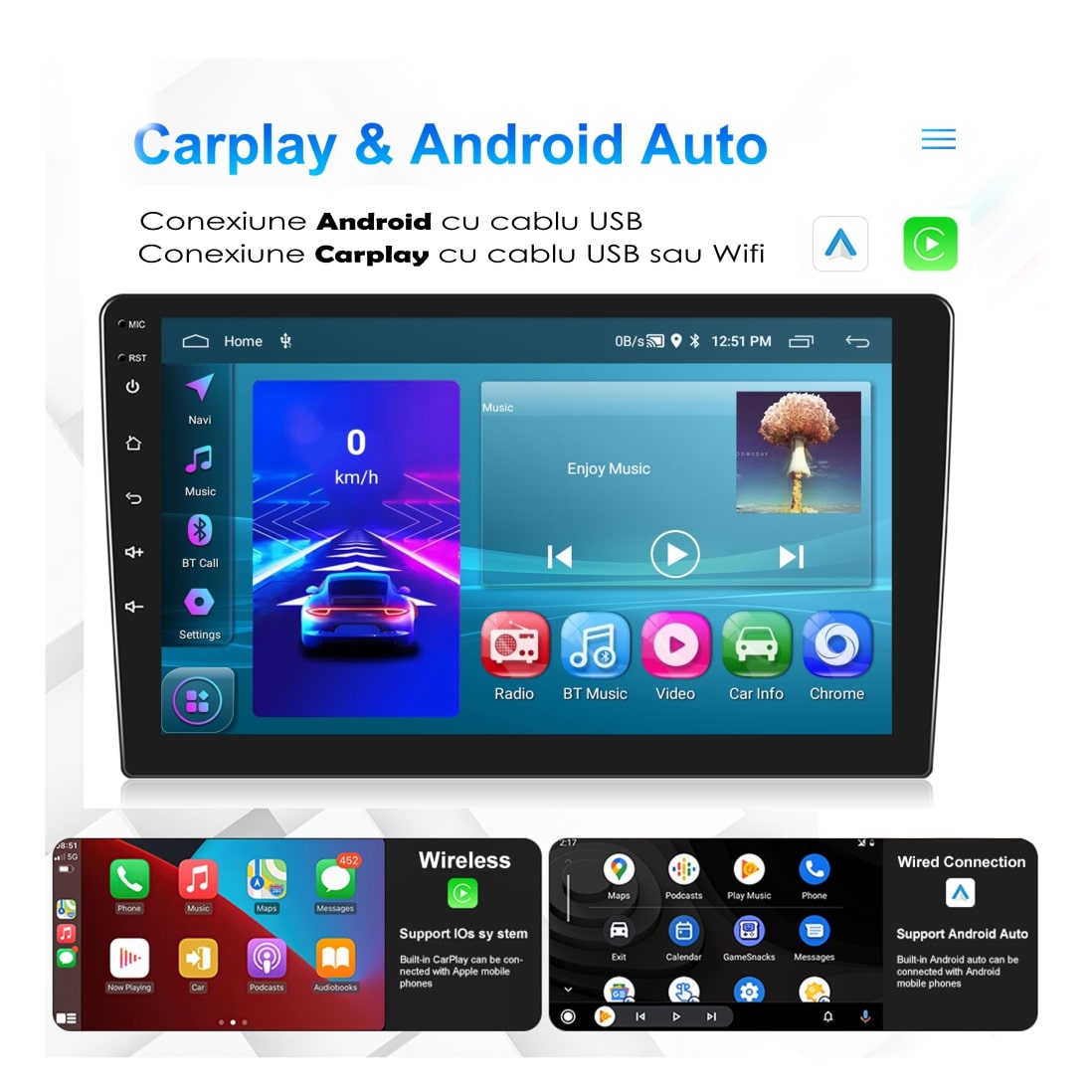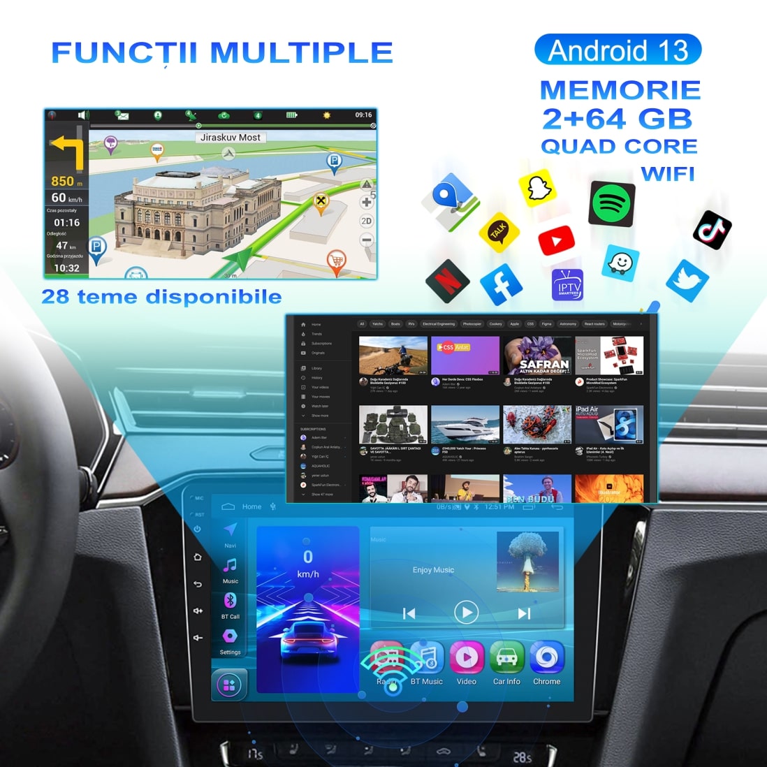 - Sistem de operare: Android 13 (suporta Wireless, Android Auto - cablu USB, Carplay)