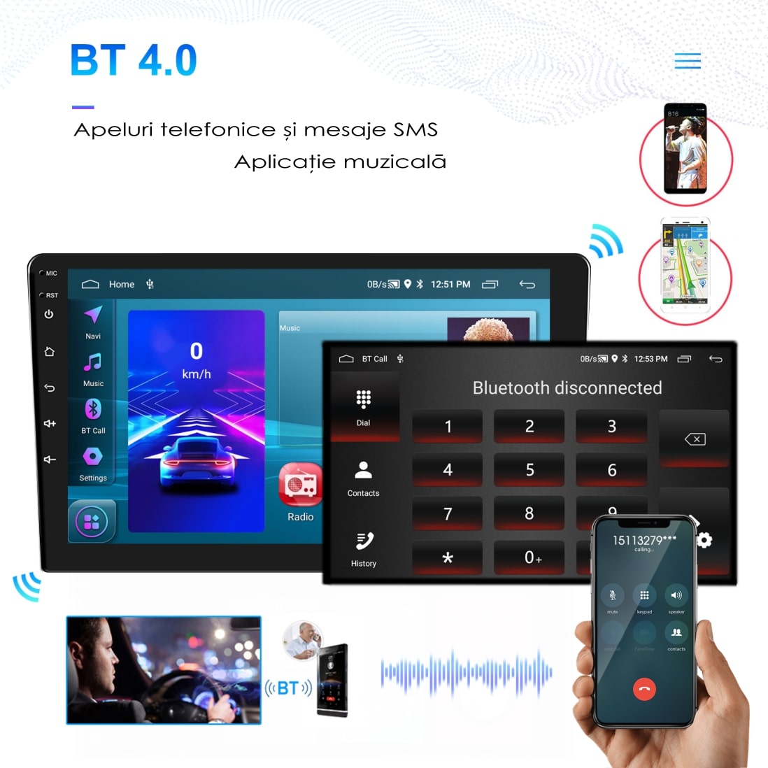 Conexiunea Wi-fi (Carplay) si Bluetooth-ul incorporat cu A2DP/Maini libere/Agenda telefonica permit efectuarea de apelurilor Bluetooth cu maini libere, Player muzical Bluetooth, precum si incarcarea automata a agendelor telefonice.