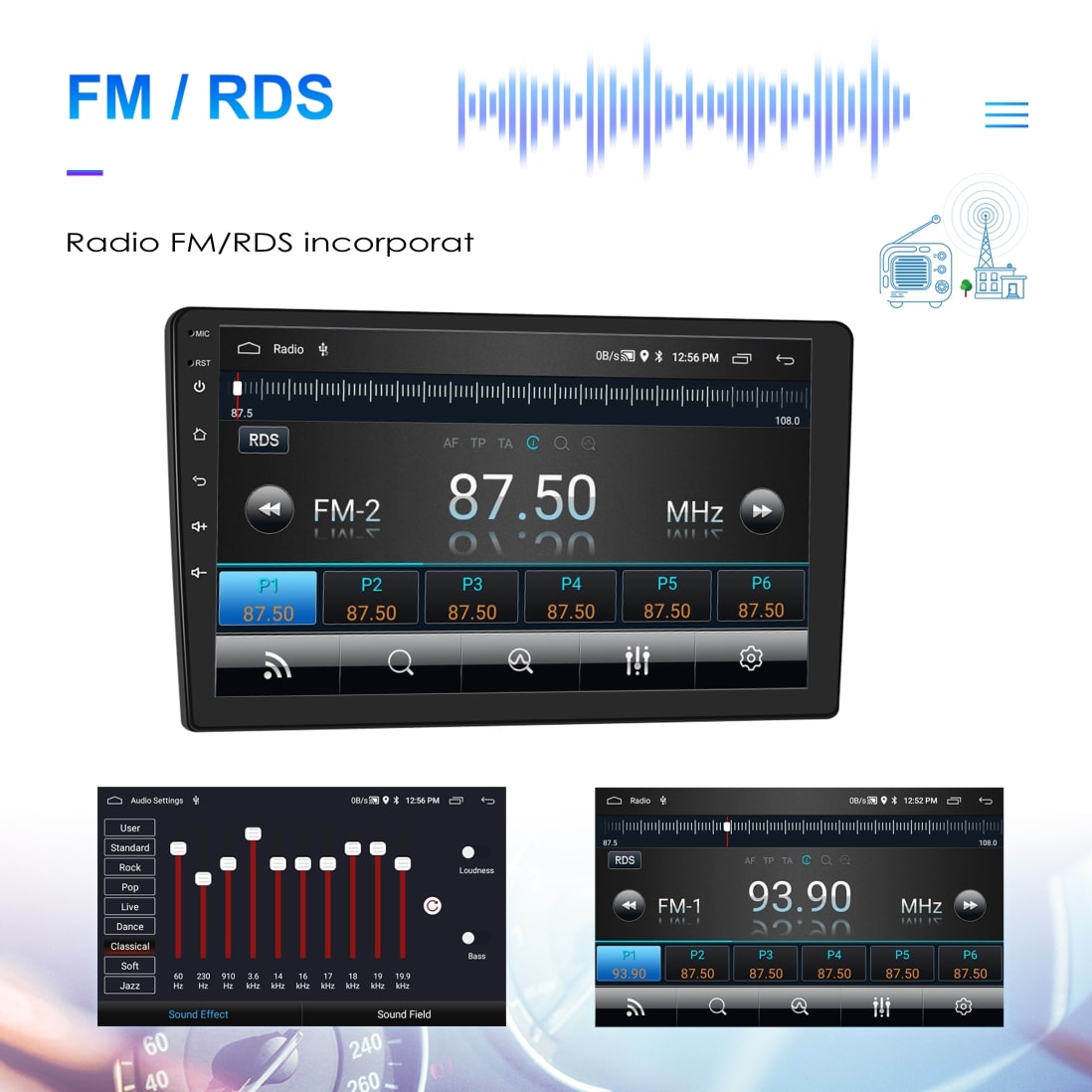 Radio FM/RDS. Te bucuri de informaţii in timp real privind denumirea şi tipul programului ascultat, numele postului, precum şi alte date referitoare la trafic sau starea vremii.