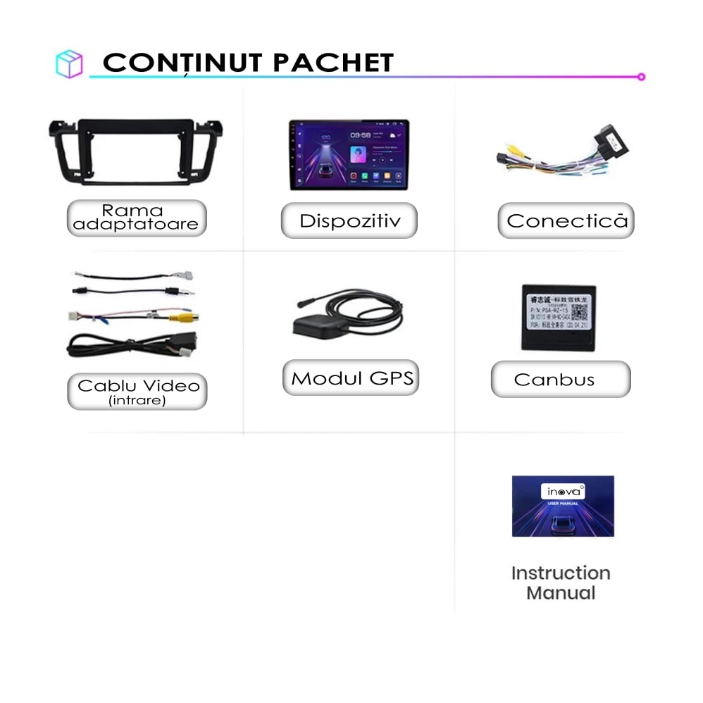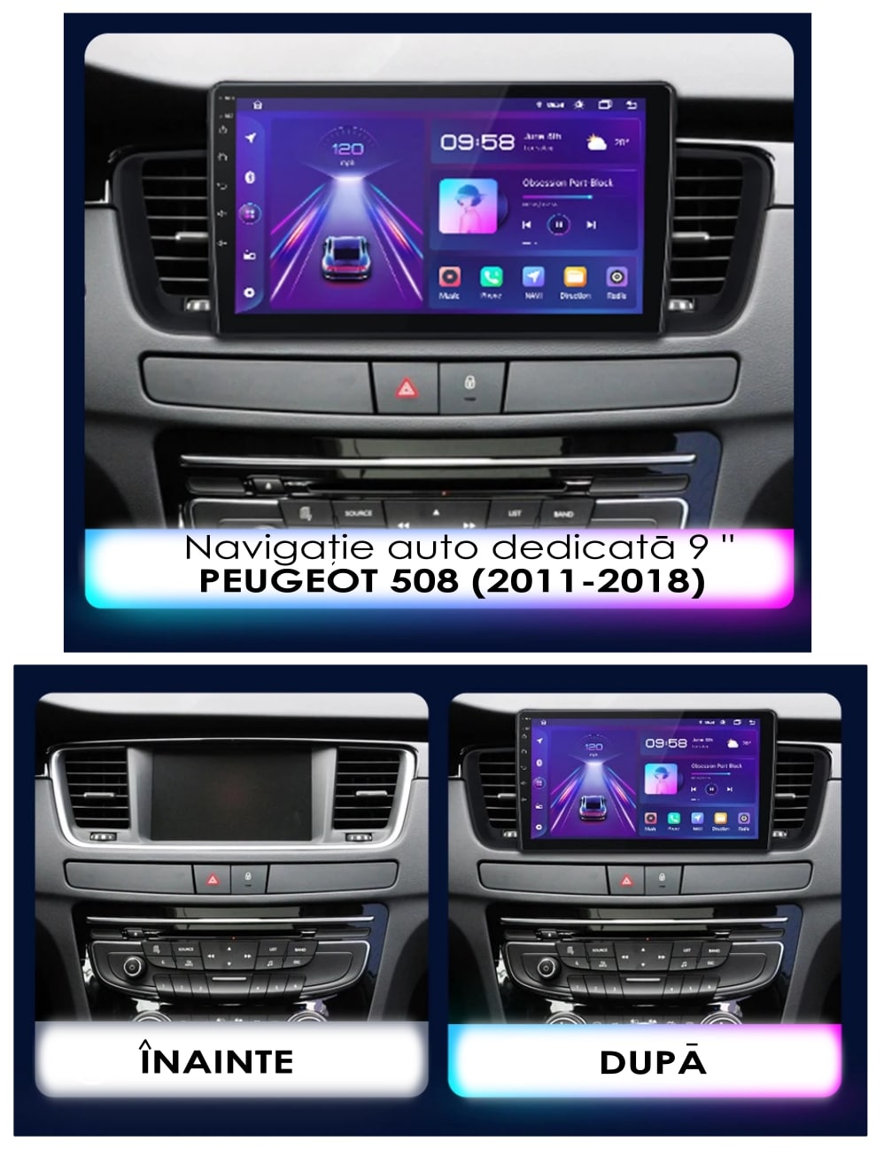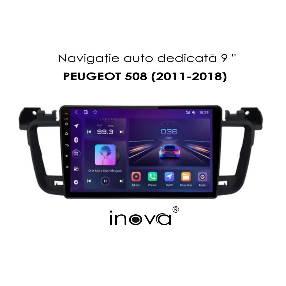 Navigatie auto INOVA® dedicata Peugeot 508, 2011-2018, Wireless Carplay, Android Auto, 2GB RAM, 32GB ROM, Android 12, GPS, Bluetooth, Ecran HD Touch, 9 inch, Quad-Core 4 x 1.6 GHz, 2 x USB