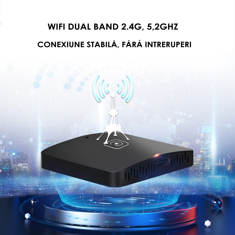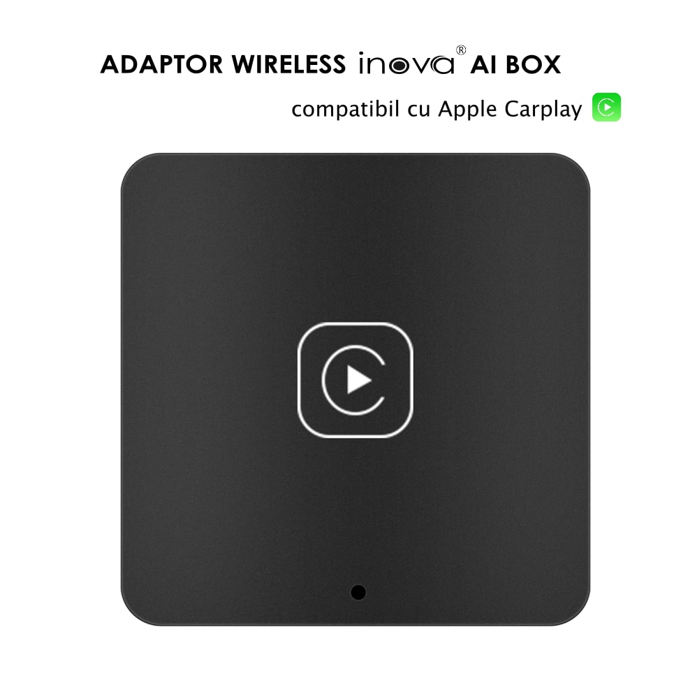 Adaptor wireless INOVA® AI BOX compatibil cu Apple Carplay, Plug&Play, Wifi Dual 2.4-5.8GHz, Bluetooth 5.2, compatibil USB, USB-Type C, asistent vocal, reconectare automata, multifunctional, universal, negru