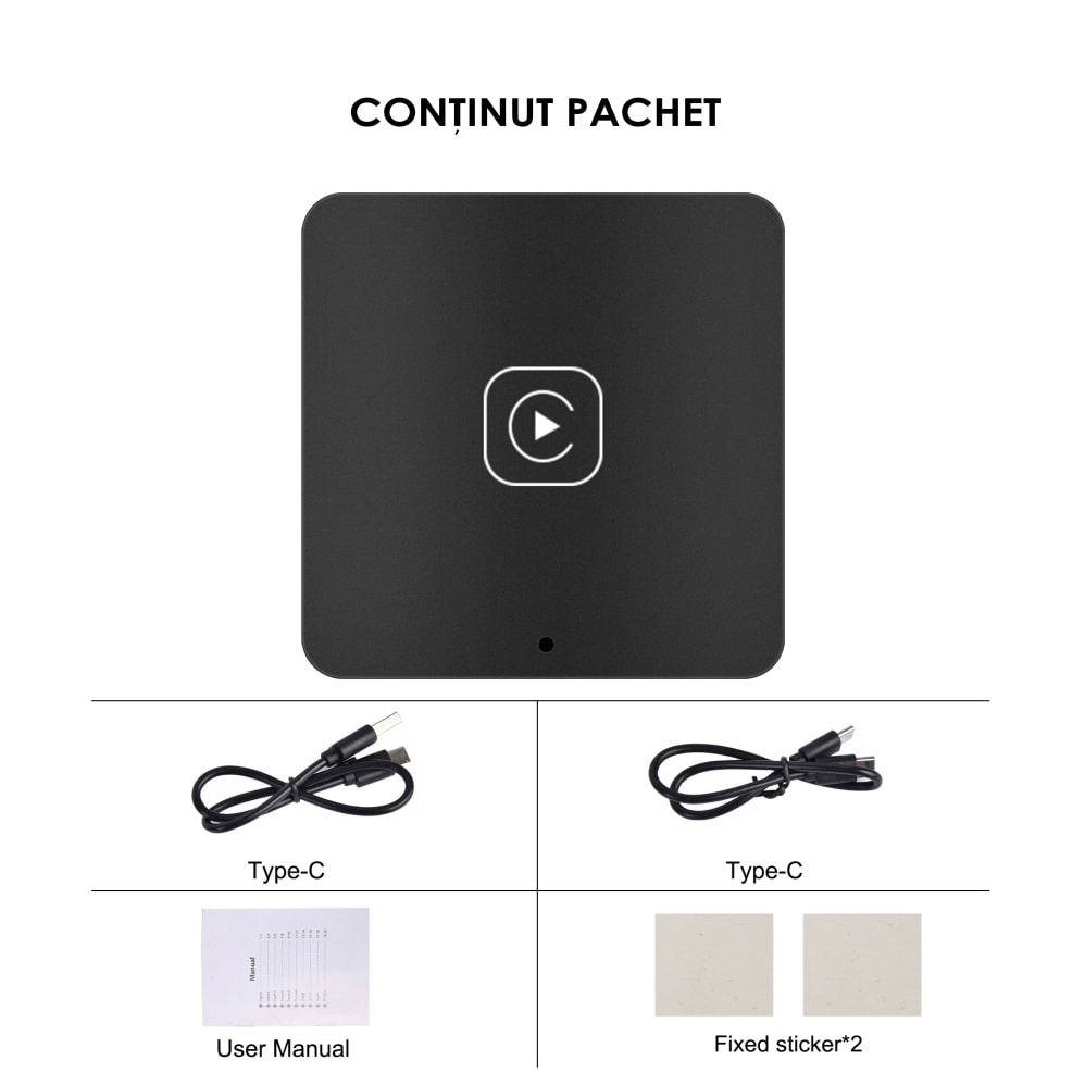 Instalarea adaptorului wireless CarPlay nu necesită expertiză tehnică. Conectarea și configurarea sunt foarte simple. Odată instalat, dispozitivul se va conecta automat la telefonul tău ori de câte ori urci în mașină.
