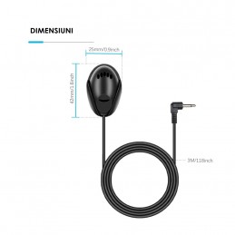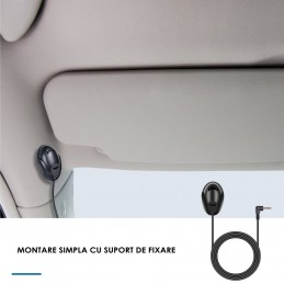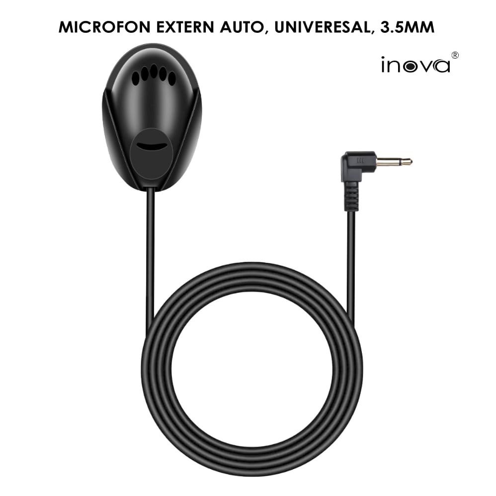 Microfon extern auto INOVA® cu suport de fixare, universal, Handsfree, Plug&Play, jack 3.5mm, cablu 3m, Auto radio, PC, Laptop, negru