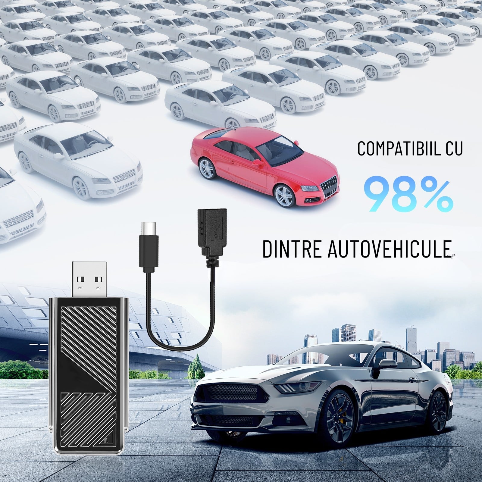 Adaptorul este compatibil cu majoritatea modelelor de mașini care acceptă CarPlay cablat, oferind posibilitatea de a folosi Android Auto wireless chiar și în vehicule care nu dispun de această funcție din fabrică.